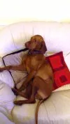 When I first saw Hugo a good description would be "a bag of bones". He was very under weight and very nervous. When a dog is put under pressure adrenaline kicks in and they have two options - fight or flight. Despite his lack of confidence he had learnt that "fight" worked and scared other dogs off so his default action meant that he would "attack first ask questions later". This made it impossible for his owners. He only had to see a dog and he would start to get aggressive. His owners have done a huge amount of work with him and got him to point where he could be let off around other dogs and not immediately go for whatever dog bothered him. In fact he took a shine to one of our dogs and she had to tell him to leave her alone! With a dog with as many problems as Hugo it isn't a case of "ok he is fixed". He still doesn't trust other dogs and his nervousness means that his owners will always have to keep a close eye on his signals and if he is not coping, take him away and let him calm down. He is now the most spectacular Vizla to look at and looks to his owners for guidance rather than making his own decision. His owners have done a tremendous job with a dog that many people would simply have given up on long ago and they can be truly proud of both theirs and Hugo's achievements.